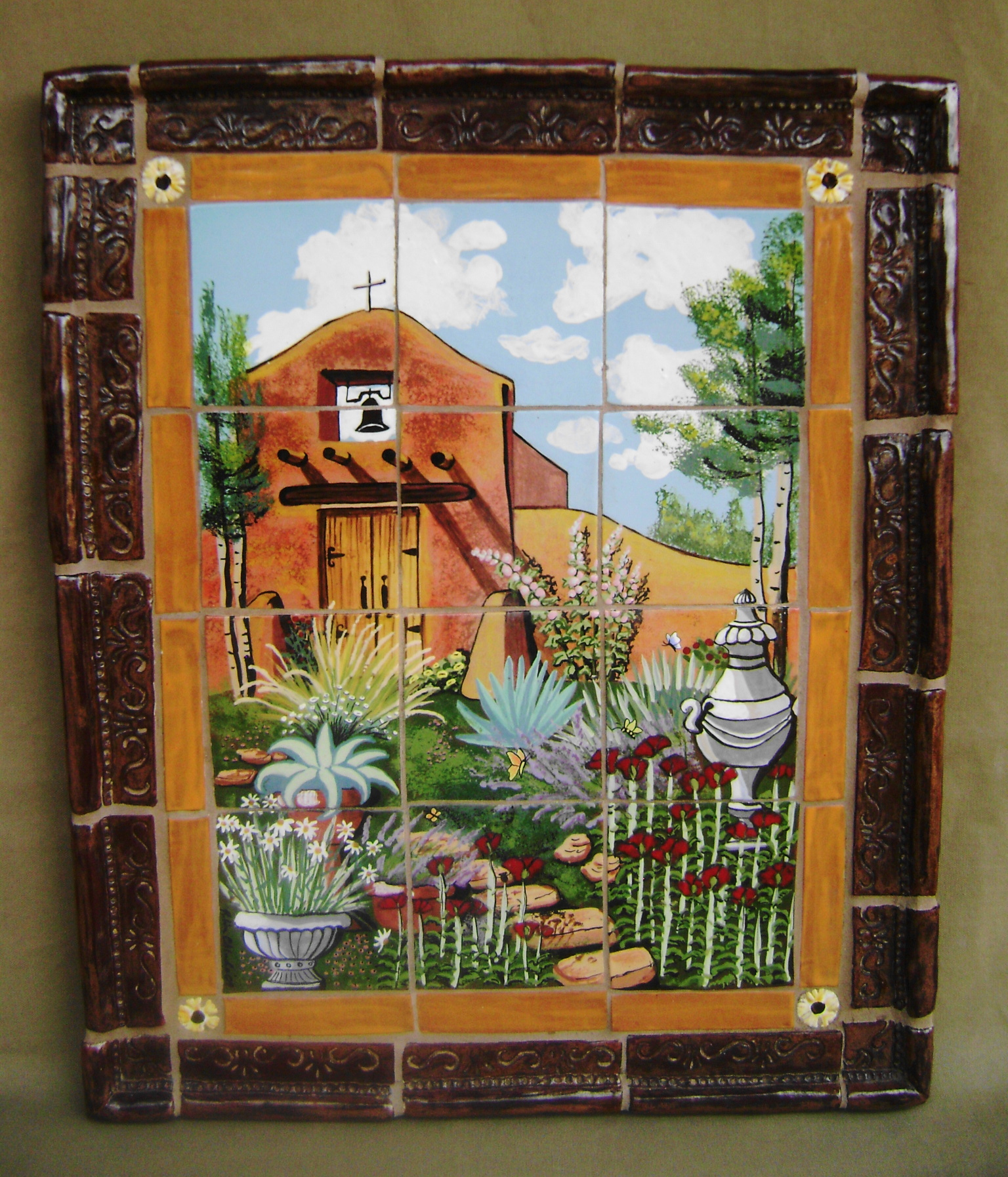 So I am putting together a class in tile painting with underglazes. We will be starting out small by painting trivets. Hopefully, if you are willing, we can graduated to a full mural with a frame like the one below.