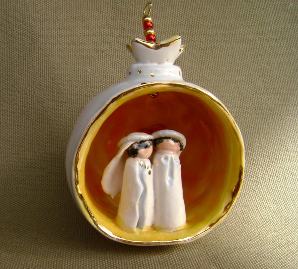 Wedding Couple with Cross, Pomegranate Ornament, $45.00
