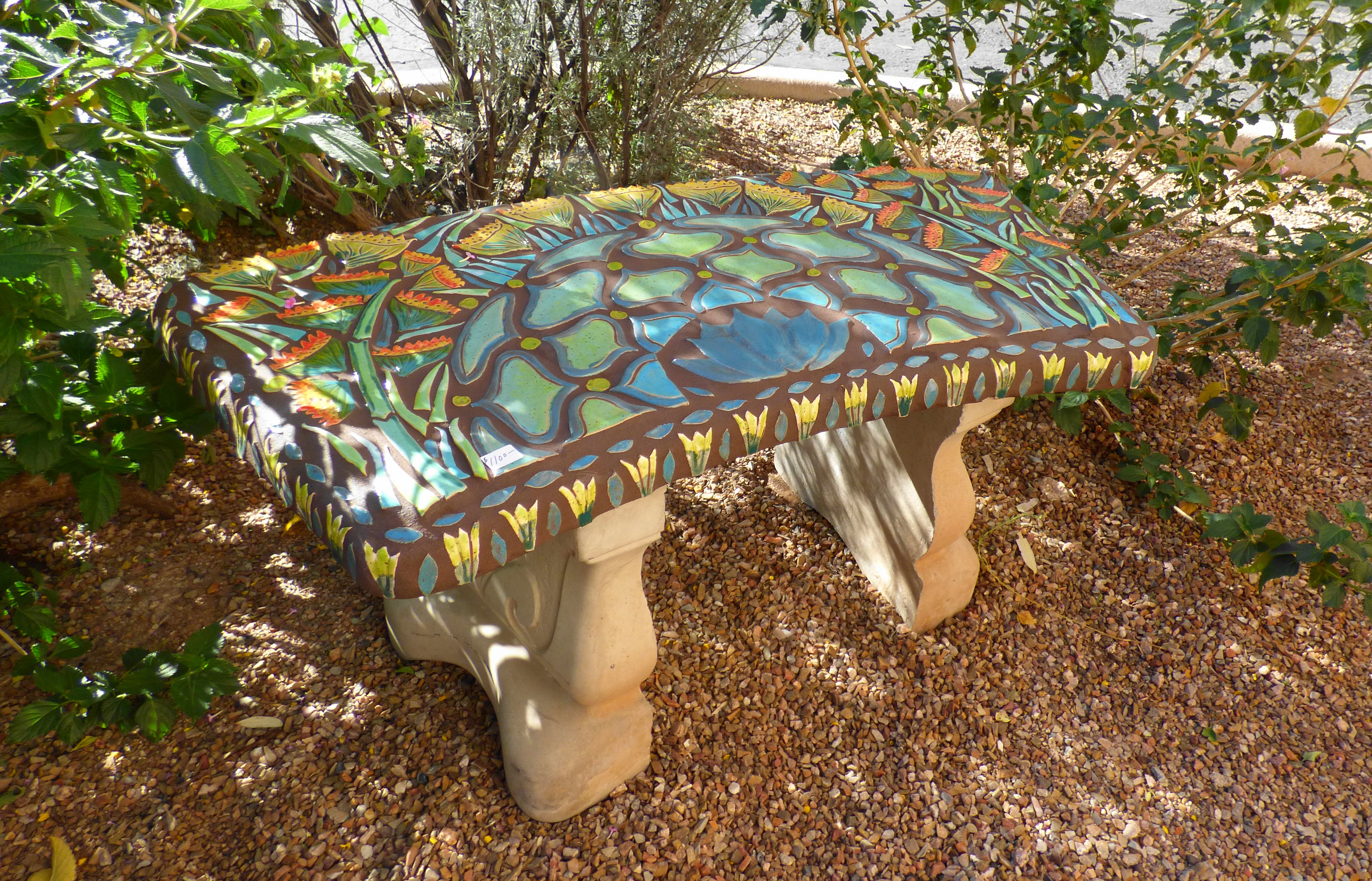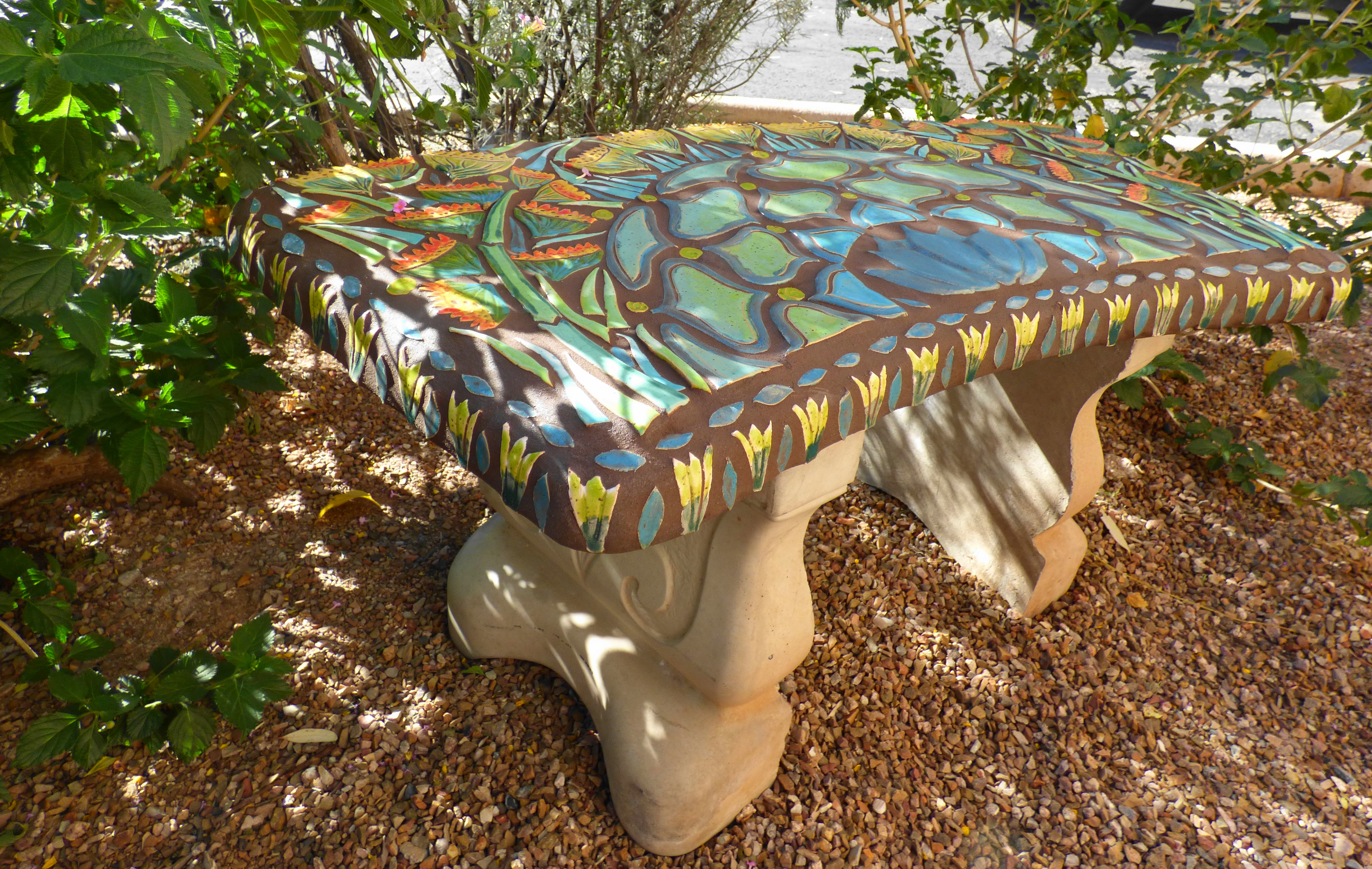 The past several weeks I have produced larger work for indoors or outdoors. This bench is titled: