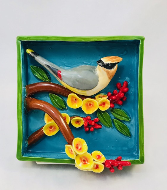 Pomegranate Finch Ceramic Wall Art