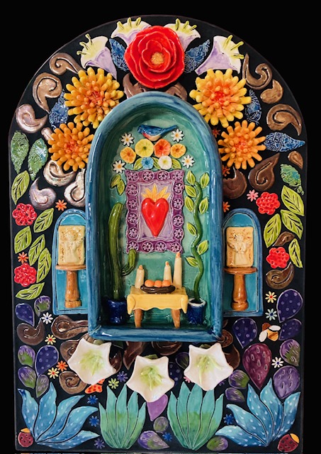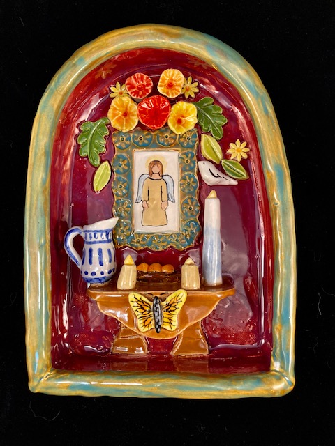 Learn to build a clay arched shadow altar/ box using Robin’s techniques. There are many components to this piece and Robin takes you through it step by step. She has templates to help you create and make it your own. Such as, an altar for your pet dog or cat. Or an Altar remembrance of your nana. It helps to have previous experience with hand building clay but not required.