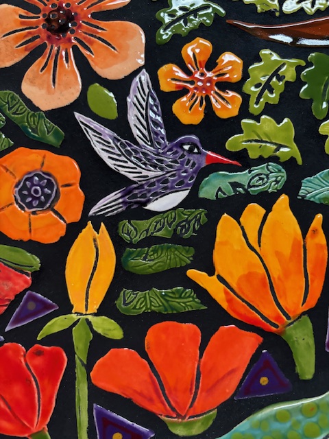 I enjoy making 3 D tiles and ornaments because I love sculpting and it makes my mosaics much more dynamic.